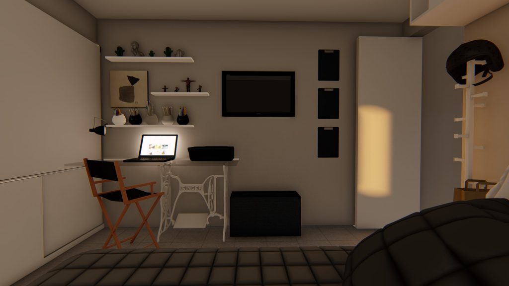 O estilo atemporal foi a escolha da jovem cliente, o cenário principal do projeto foi o home office amplo e prático, ao mesmo tempo sendo um ambiente relaxante, pois se refere a um quarto.